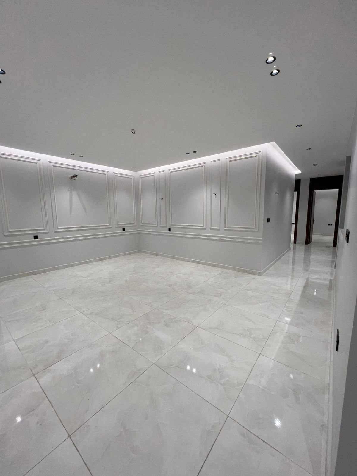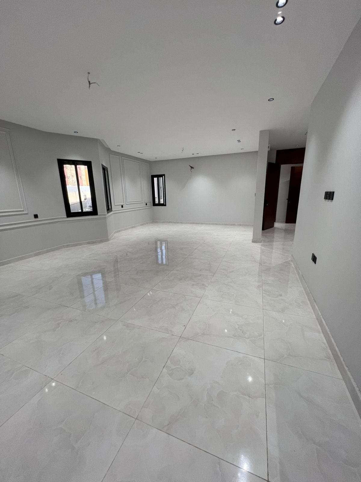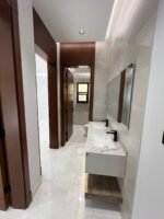 الشقة: 6 غرف، 4 دورات مياه، صالة، مطبخ، خادمة، غسيل، سائق، خزانات، موقف خاص